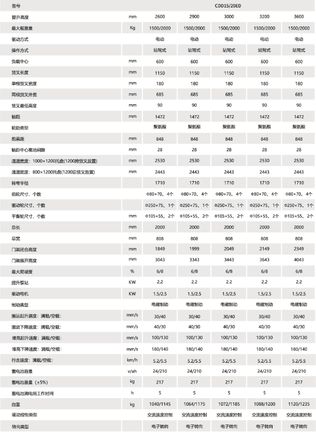 堆垛車系列CDD15/20-E2C15托盤堆垛車(高配雙起升)